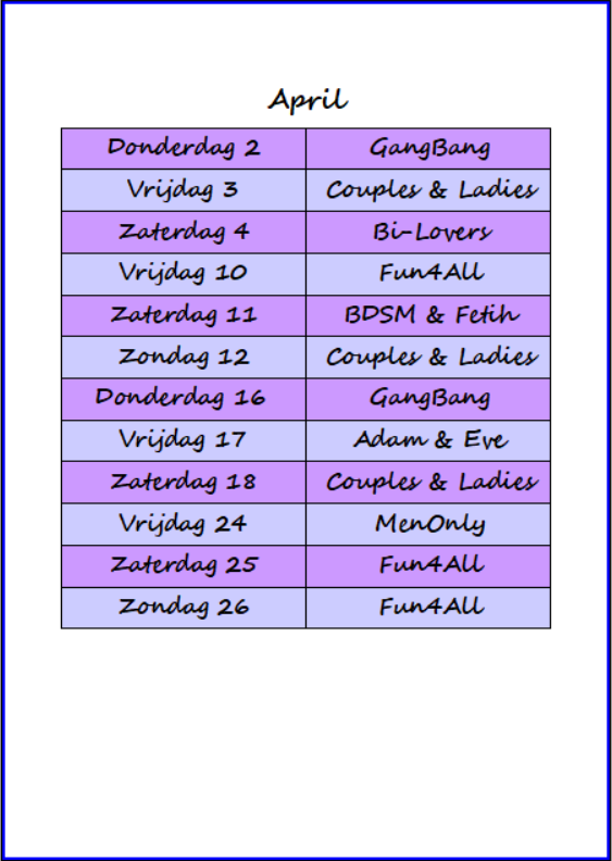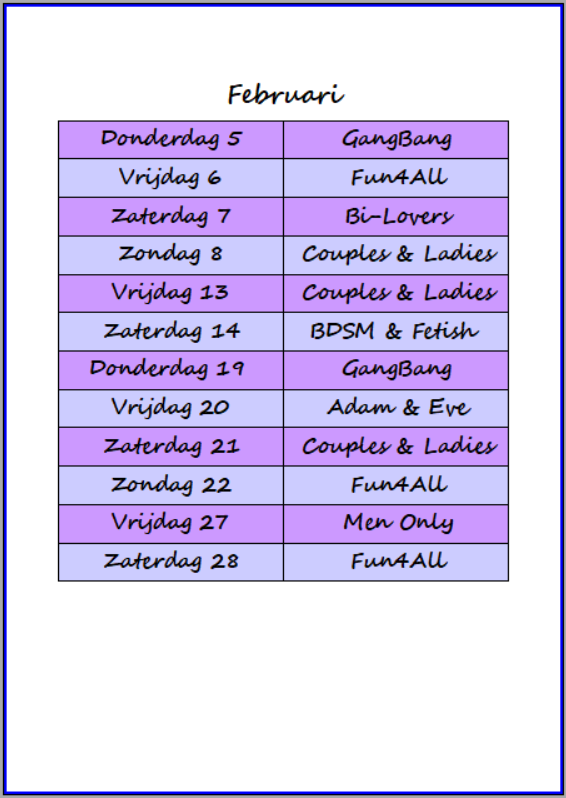 Sfeervolle locatie: Onze club is gehuisvest in een charmant, rustiek pand dat doet denken aan een gezellige boerderij. Ontdek onze 11 unieke kamers, elk met een eigen thema en sfeer: van luxe bedden en een waterkamer voor ontspannende watermassages tot kamers met fuckboxen, meerdere jacuzzi’s en een sauna. Overal liggen handdoeken klaar voor jouw gemak.